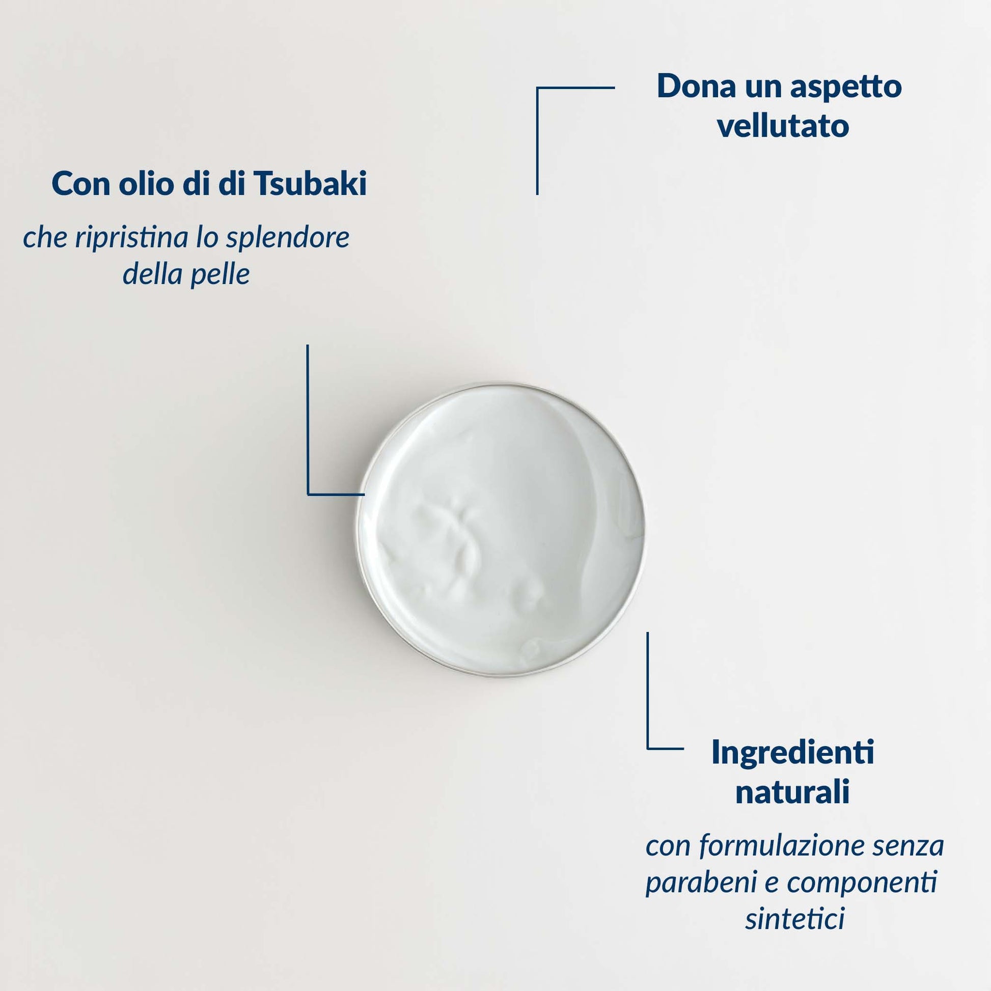 Il terzo step riguarda l'idratazione della pelle con l'applicazione del burro idratante B-Soffice, arricchito da oli preziosi tra i quali l’olio di Tsubaki che ripristina rapidamente la pelle al suo antico splendore.