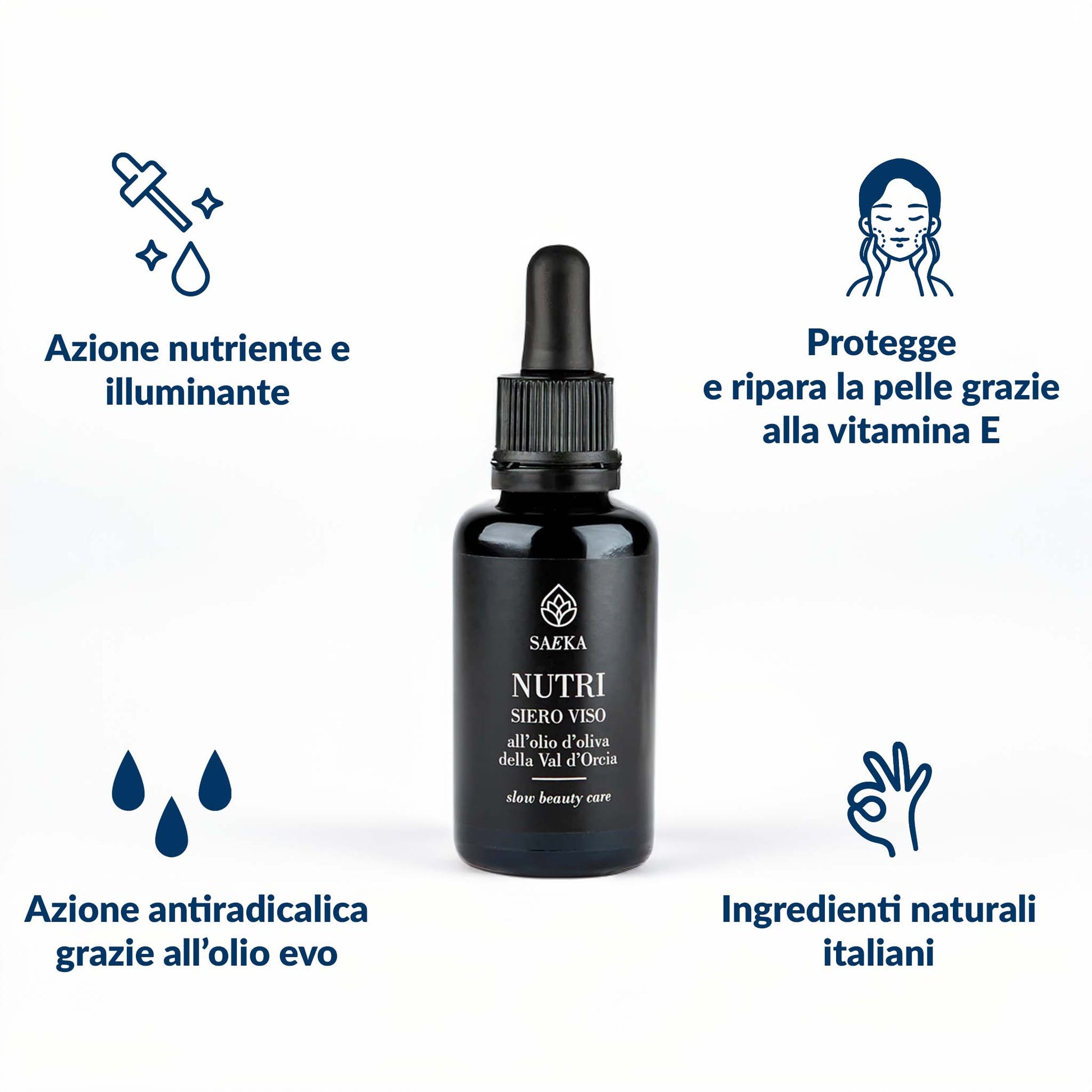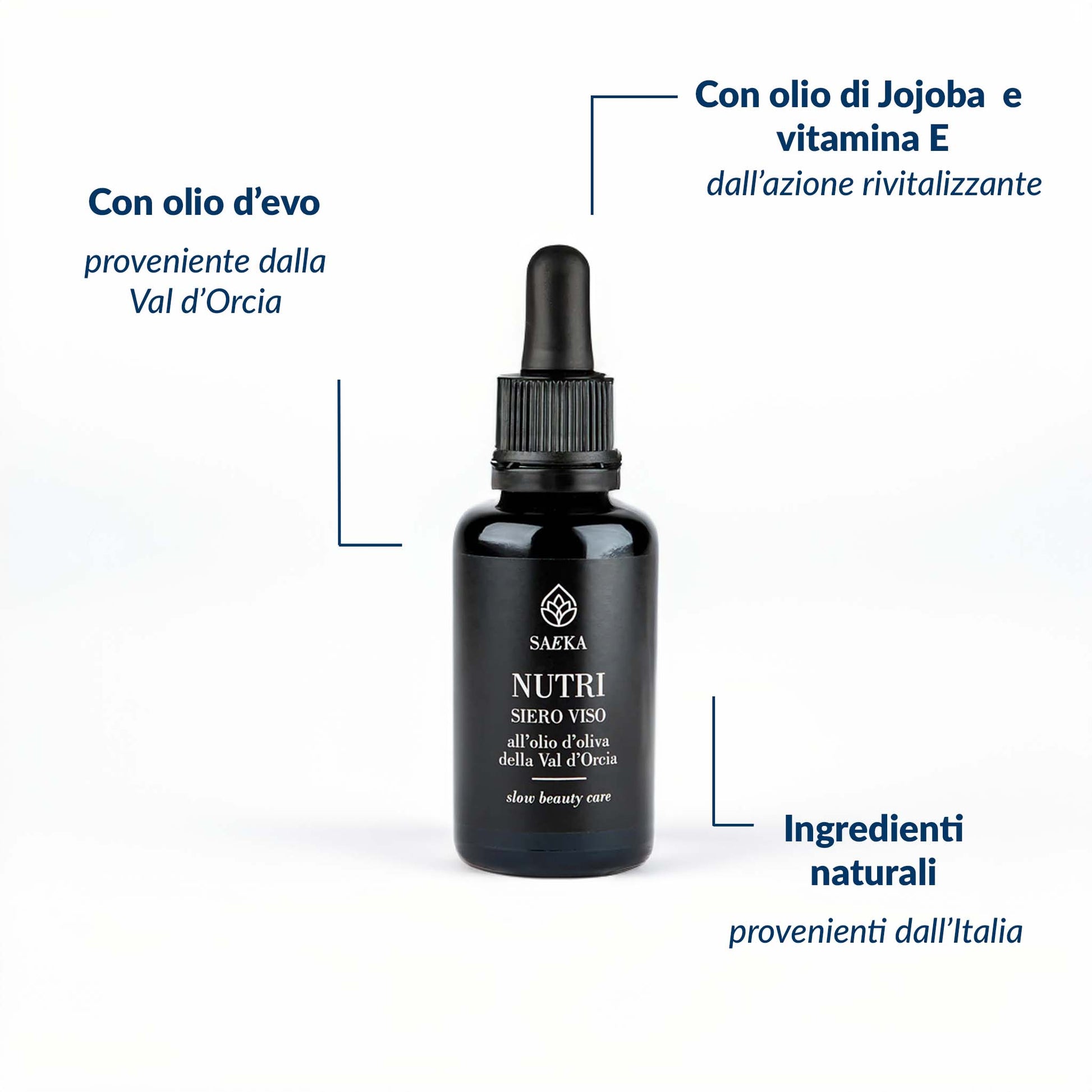 Infine il siero nutriente Nutri, con olio di oliva ricavato dalle varietà Frantoio, Leccino e Moraiolo, tipiche della Val d’Orcia.