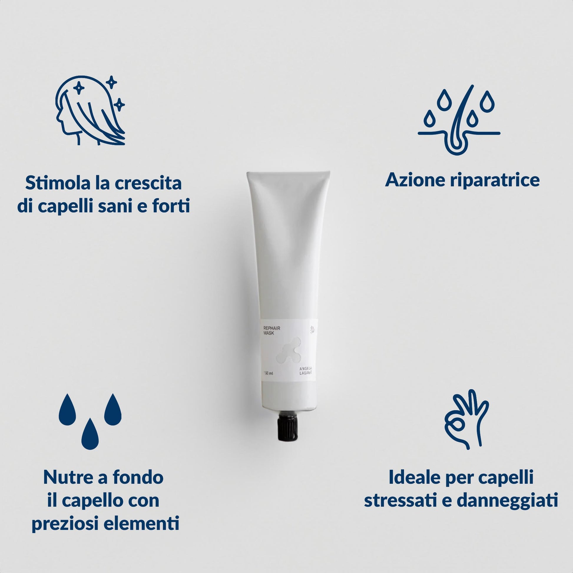 Trattamento intensivo ad azione riparatrice, ideale per capelli stressati e danneggiati.